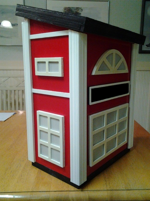 Puinen postilaatikko joka on maalattu sään kestävillä väreillä.